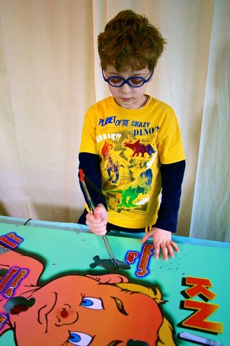 Remember Operation, Under the knife is great fun for all ages! This over-sized board game is colorful, fun, and an instant classic. Players use the huge tweezers to extract fun parts from the nervous patient. If either the tweezers or the game piece touches the game board Uh-Oh! The patients nose lights up and funny sound effects are triggered.